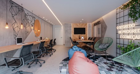 Todos os detalhes foram pensados para promover mais qualidade de vida e diversão para você e sua família! Salão de festas Churrasqueira Piscina adulto e infantil Espaço Kids Área Gourmet Academia Varanda de jogos Playground Lobby mobiliado e decorado Co-Working